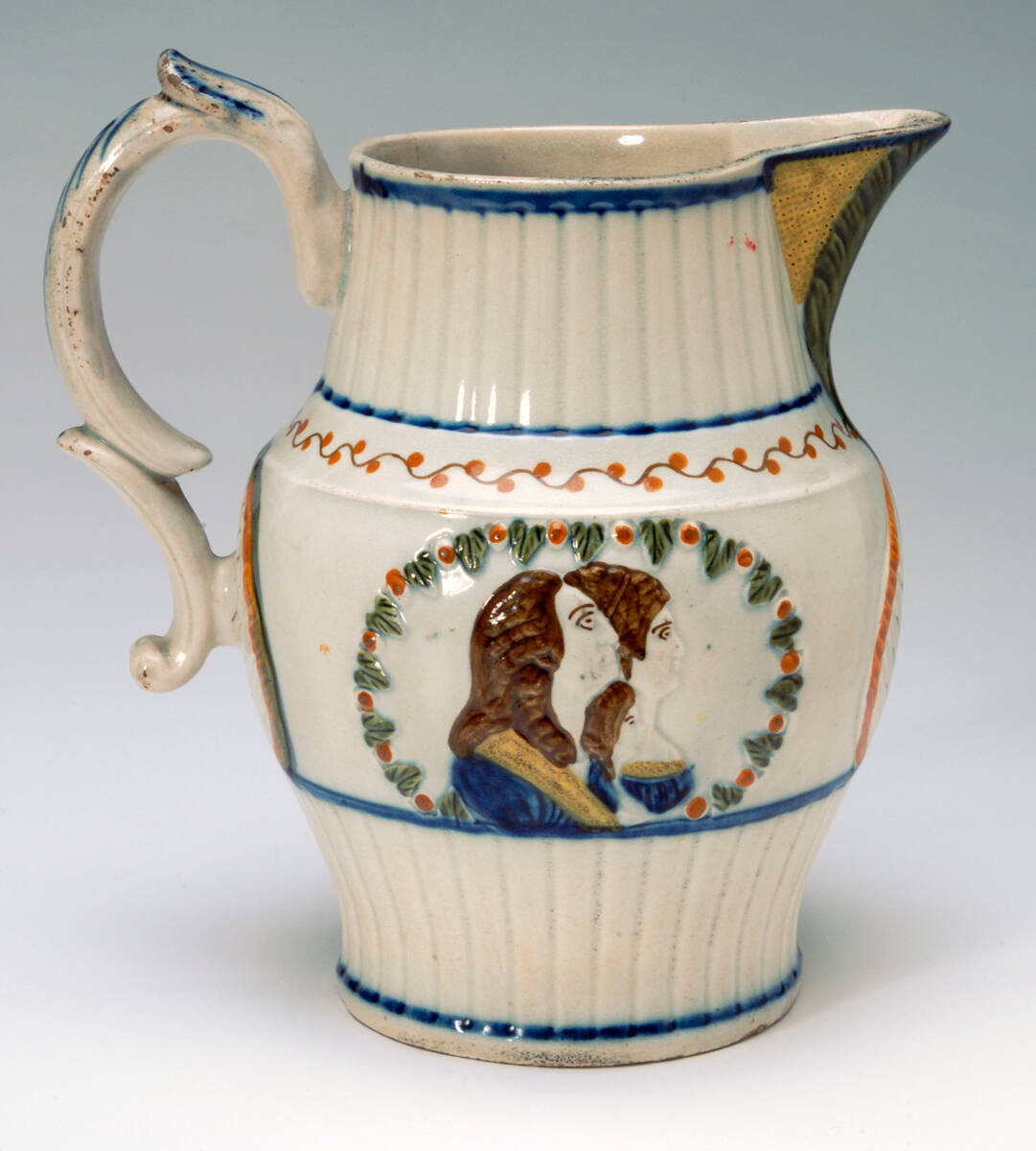 MediumEarthenware with lead glaze and enamel (Pratt ware)