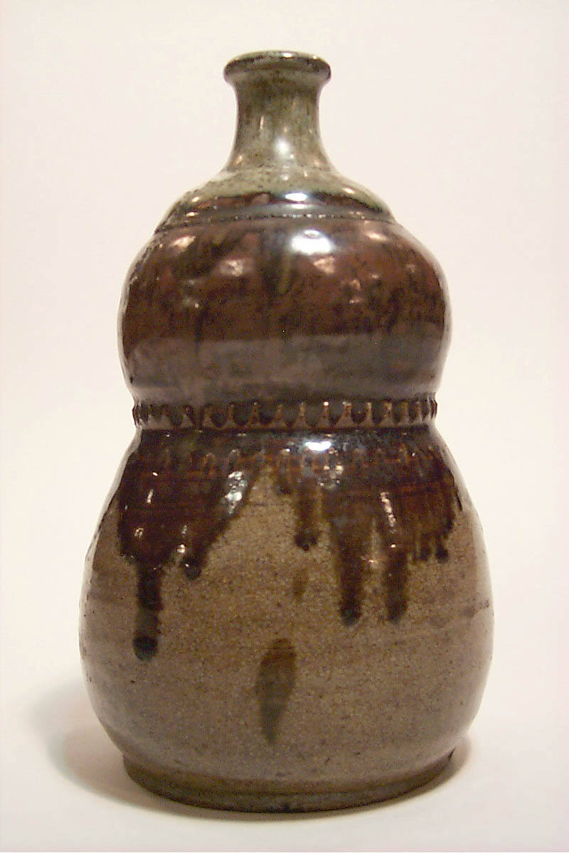 MediumStoneware with iron glaze under clear crackle glaze (Mino ware)