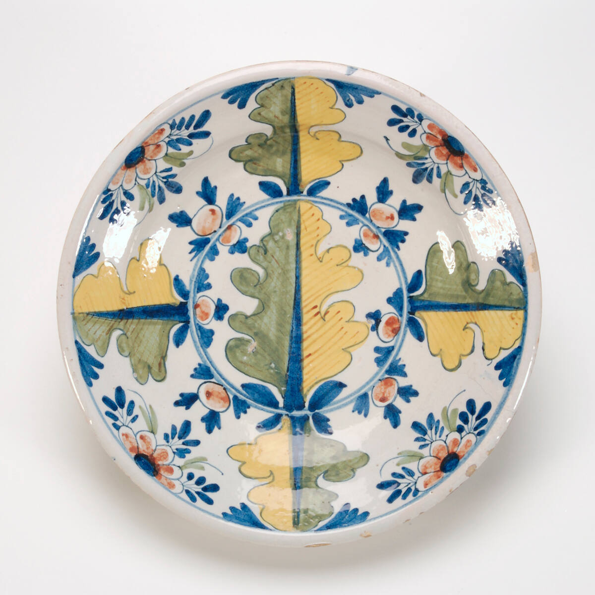MediumEarthenware with tin glaze and enamels (delftware)