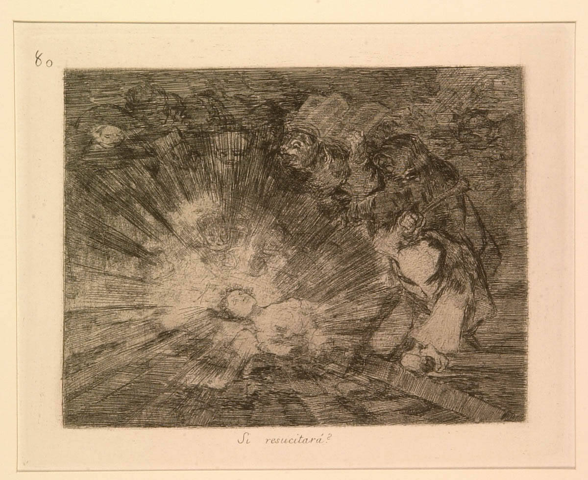 Pierre Gassier and Juliet Wilson-Bareau, The Life and Complete Work of Francisco Goya, 2nd ed. (New York: Harrison House, 1981), no. 1134, pp. 220, 257, 275, (repro.), as Si resucitará? (Will she rise again?).