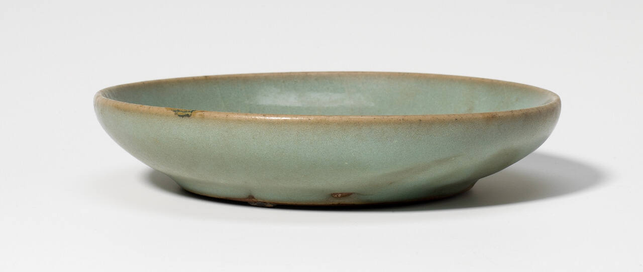 DescriptionFlat dish with grayish turquoise blue glaze, and traces of rose.ProvenanceWith Otto Burchard, Peiping (modern-day Beijing), China, by 1932;