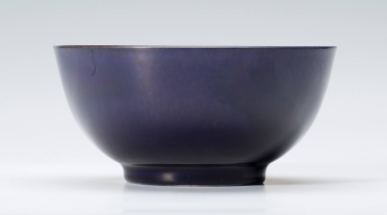 DescriptionBowl with dark blue aubergine glaze which covers interior and exterior including foot.