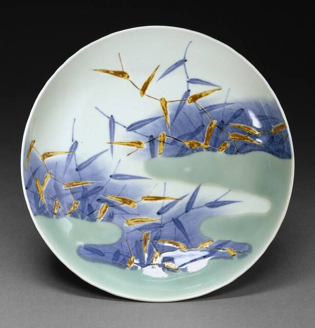 Gallery LabelThis dish was made with the highest quality materials in limited numbers in Kyushu, the island closest to the Korean peninsula. Porcelains made in Kyushu are called Hizen ware. The two Nabeshima-type dishes were made under the supervision of the Nabeshima samurai clan, aided by the knowledge and technique of immigrant Korean porcelain makers. Used in a dining service or presented as diplomatic gifts, the dishes’ designs echo the subject matter seen on other media. The bamboo motif symbolizes longevity and dignity, and the reeds swaying by water evoke a sense of tranquility and melancholy.