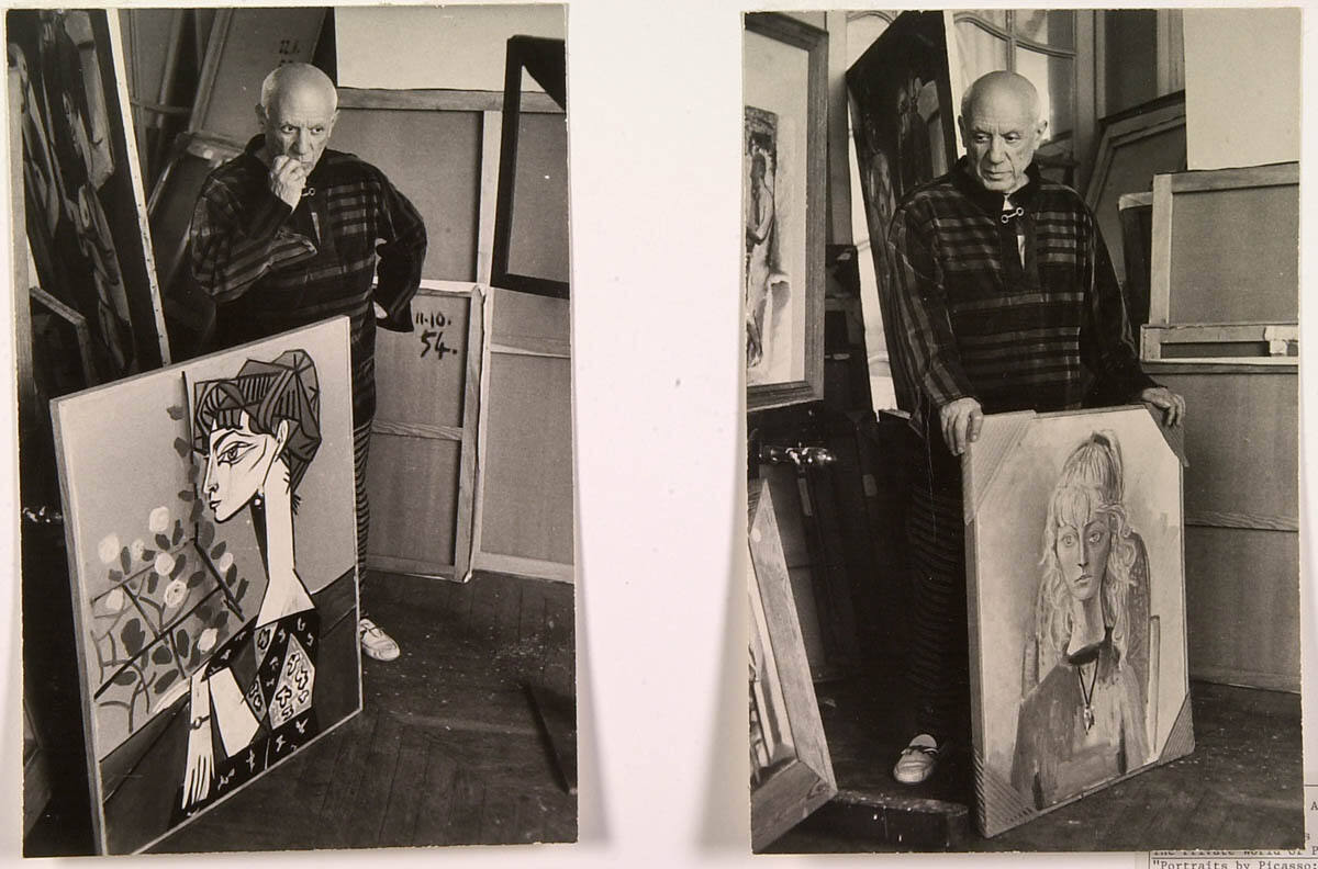 Portraits by Picasso; Jacqueline as Swan-necked Sphinx, 1955, Sylvette with Pony-tail, 1954; J. in Black Scarf, 1954