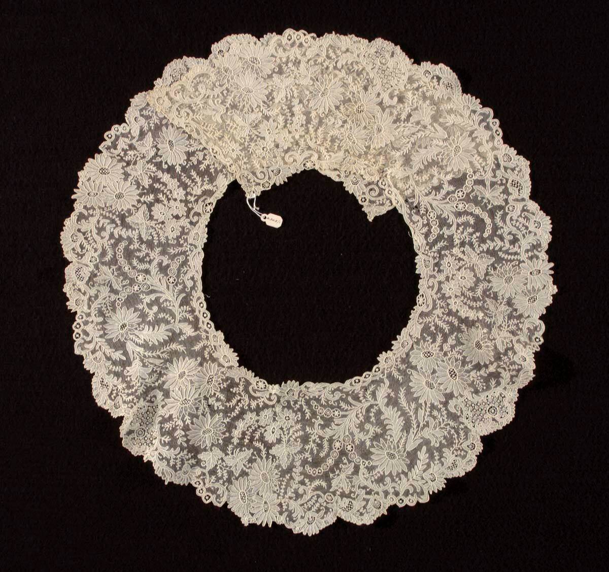 DescriptionNeedle lace of the type known as point de gaze. Well-made example with shaded flower heads and decorative fillings, but without added petals.