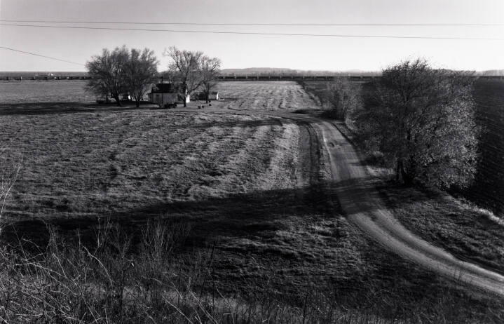 Frank Hamilton was powerfully influenced by his study of Edward Weston prints in the Nelson-Atkins collection. Hamilton's technical precision and his quest to discover beauty in the local and the familiar is deeply inspired by Weston's purist aesthetic. Carriage House depicts a structure on Hamilton's former property in midtown Kansas City, while Missouri River Bottoms is characteristic of an extended series devoted to the landscape in which he grew up, in and around Platte County, Missouri. Fundamentally concerned with structure and luminosity, Hamilton is attentive to the subtle, ever-changing beauty of light and shadow.