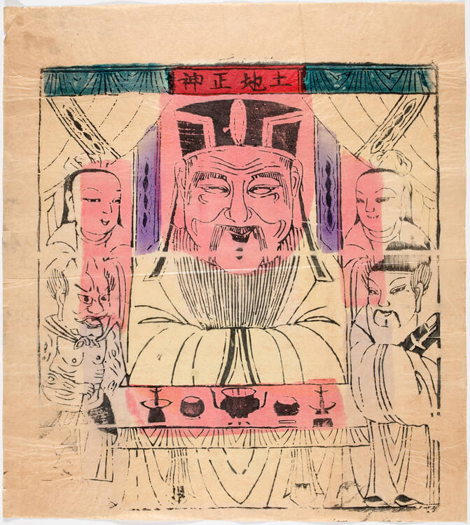 Gallery LabelThis altar makes offerings to the earth god, the guardian of household land. Low in rank among other Chinese gods, the earth god is considered to be approachable and is often portrayed as a benevolent old man. The god’s duty is to guard the building, neighborhood and town. His shrine, often decorated simply, can be found in the most humble locations in houses, villages, and cities.