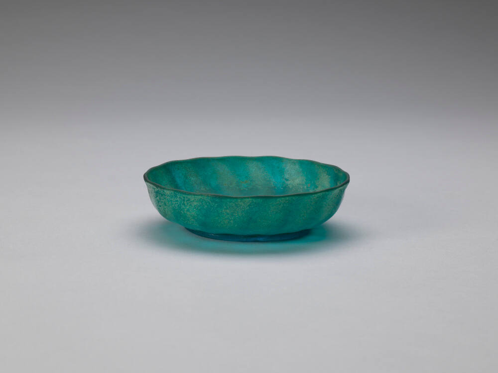 DescriptionLow bowl with body in fluted form. Narrow applied foot.