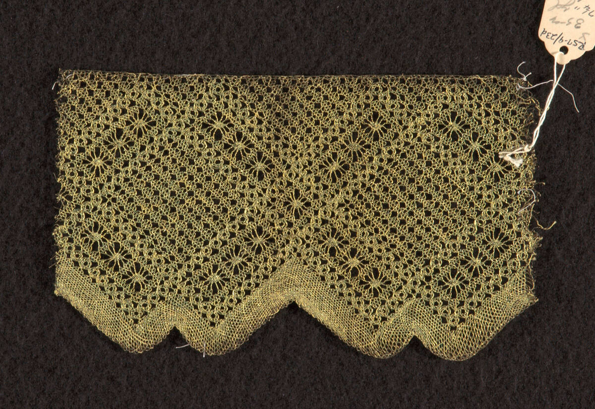 DescriptionBobbin-made straight lace in the Torchan style. Half stitch, spiders and fancy mesh.