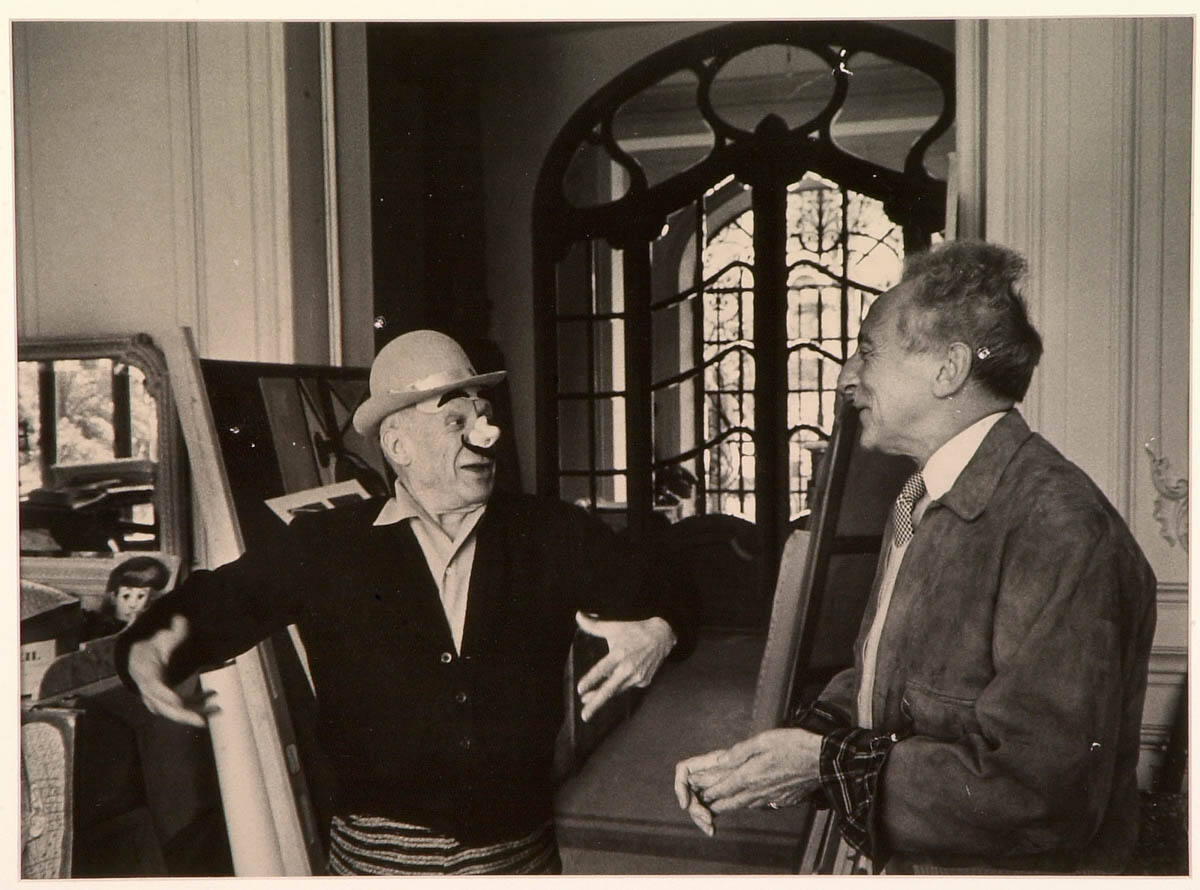 Picasso, Masked as an Italian Clown, Welcomes Jean Cocteau