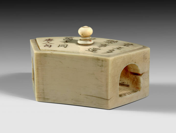 DescriptionIvory cricket bed with poem engraved on lid.ProvenanceFanny Pomeroy Brown;