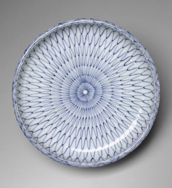 DescriptionEverted rim. Decorated with overall fishnet pattern in underglaze blue; Arita ware, blue-and-white Imari type.ProvenanceWith N. V. Hammer, Inc., New York, no. C163, by February 5, 1964;
