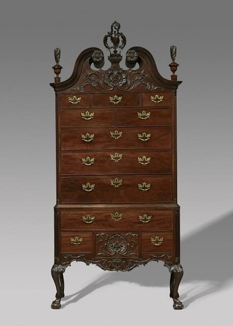 [1] According to S. W. Woodhouse, Jr., former curator, Philadelphia Museum of Art, in a letter to Roland L. Taylor, February 28, 1933, copy in NAMA curatorial files: "When I first saw the highboy in the bedroom of Miss Minnie Owens at Sixteenth and Locust streets, she informed me that it had come to her sister and her by inheritance from Anne, the daughter of Nathan Garrett of Darby; and Anne Oborn, the daughter of Eliza Knowles and niece of Anne Garrett's husband; through the Grays (from whom Gray's Ferry takes its name) to their parents. Their father was General Owens of the Pennsylvania Troops in the Civil War. They removed it from the old house in Darby. The highboy never had been out of their family until it was purchased by you."