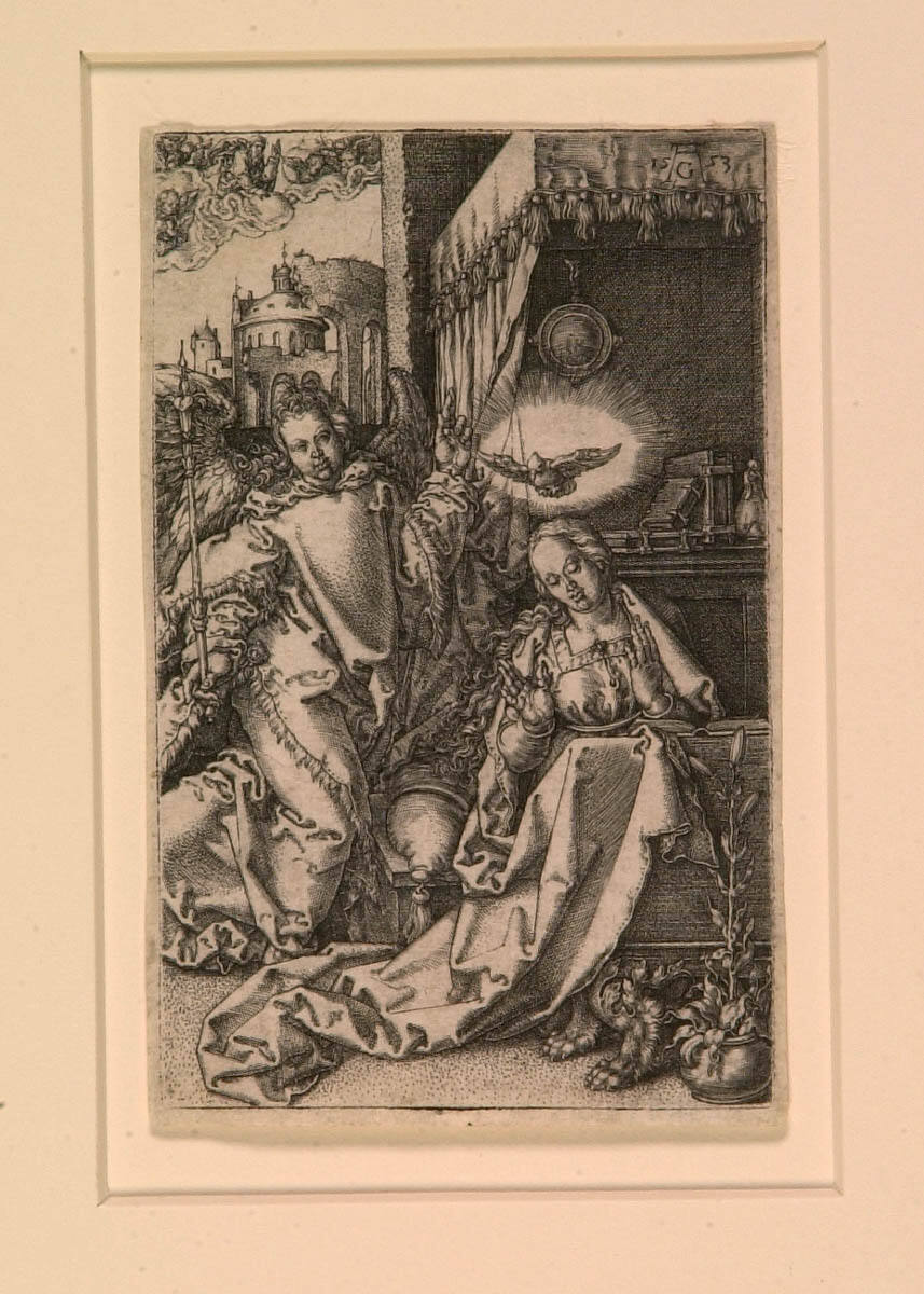 composition. The pot of lilies in the foreground symbolizes Mary’s purity. Heinrich Aldegrever modeled