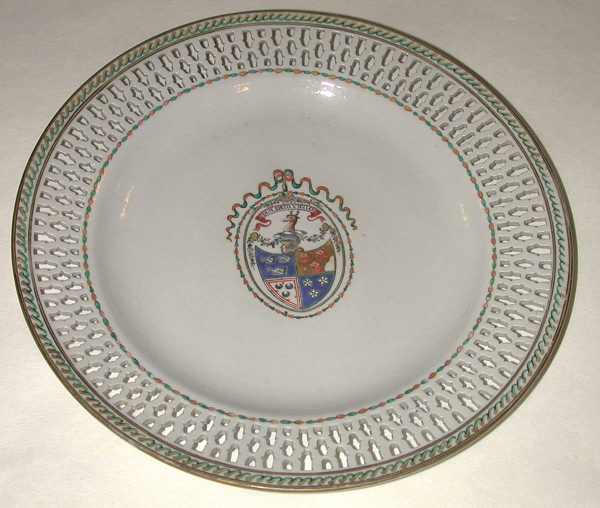 DescriptionPlate with pierced border, with Gordon arms.