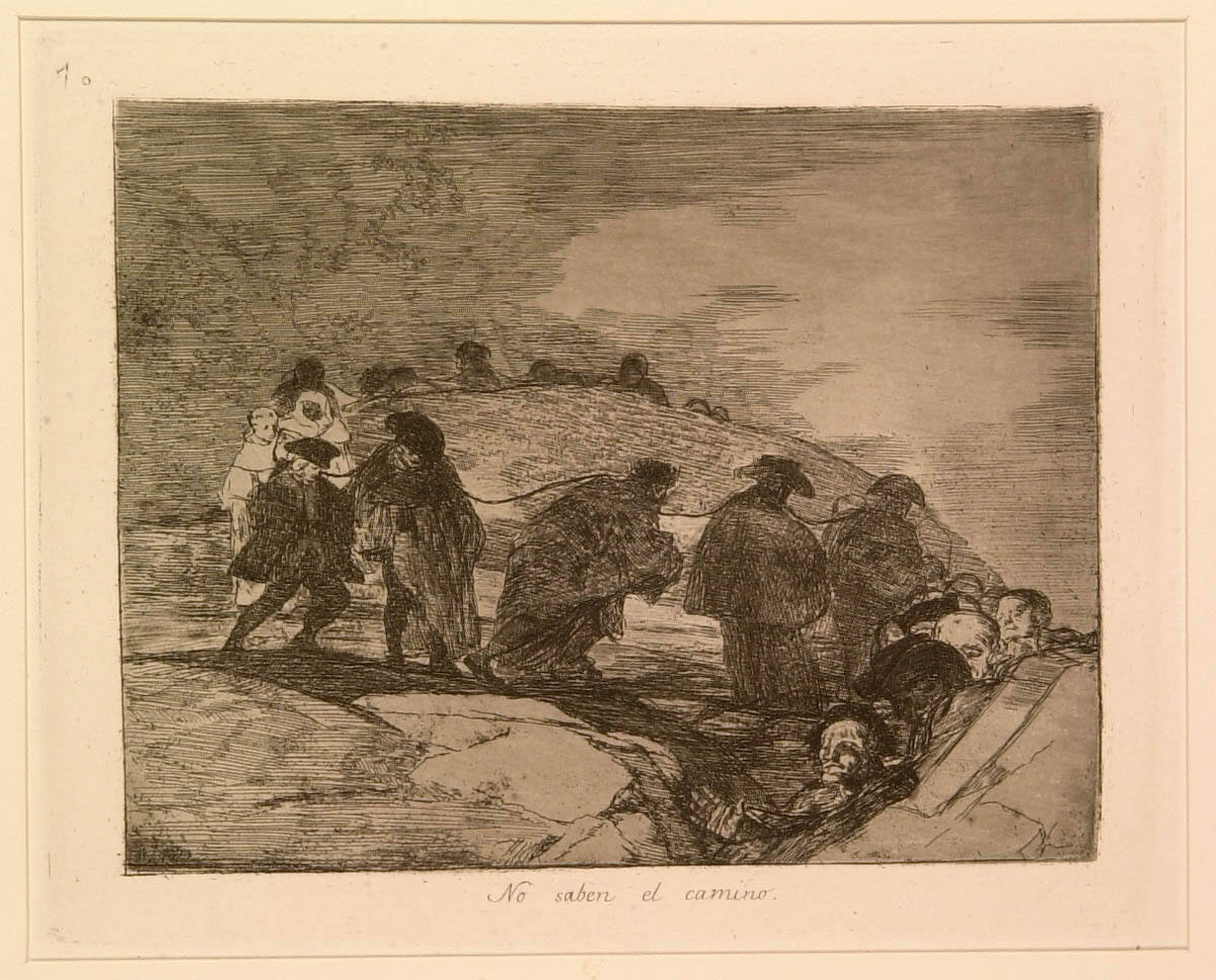 Tomás Harris, Goya Engravings and Lithographs (Oxford: Bruno Cassirer, 1964), 1: pp. 141, 146-47, 149; 2: no. 190, p. 280, (repro.), as No saben el camino. (They do not know the way.).