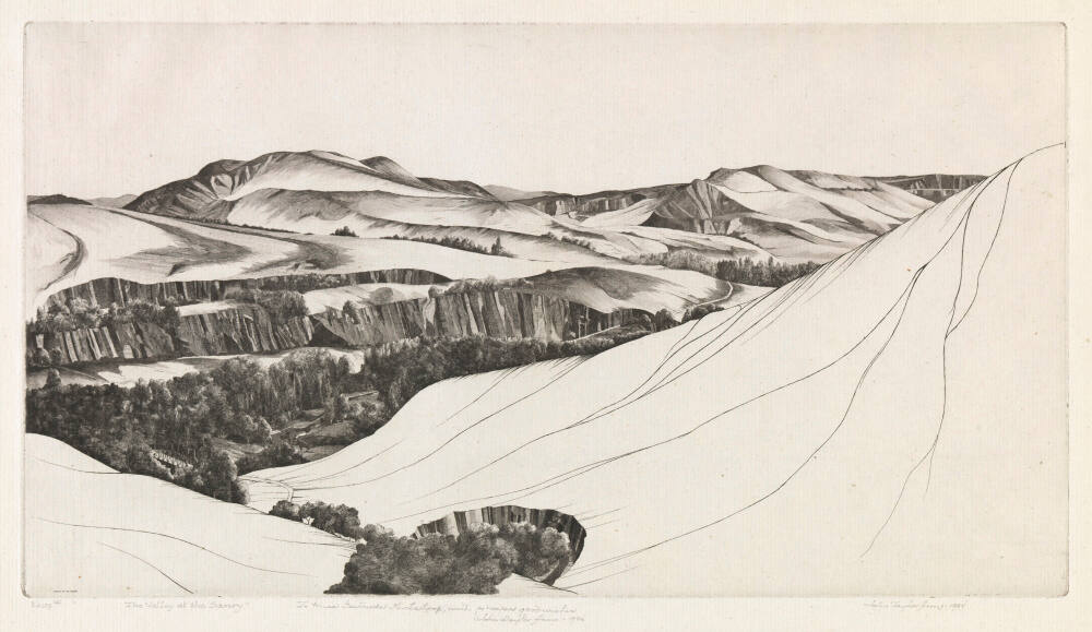 This is the only image of the American West that Arms, renowned for his precise architectural etchings, ever created.