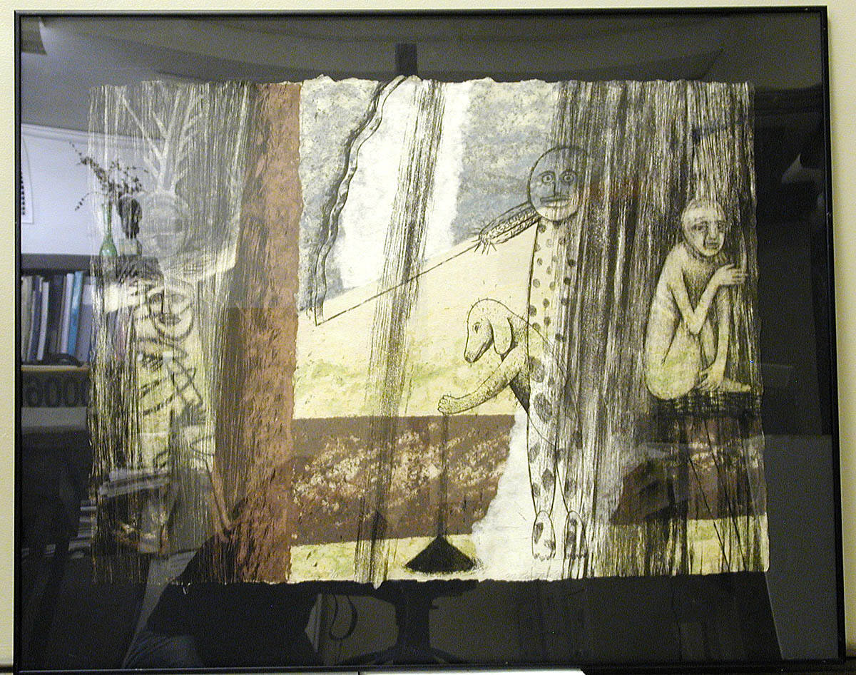 MediumTriptych; etching and handmade paper with colored pulp imagery