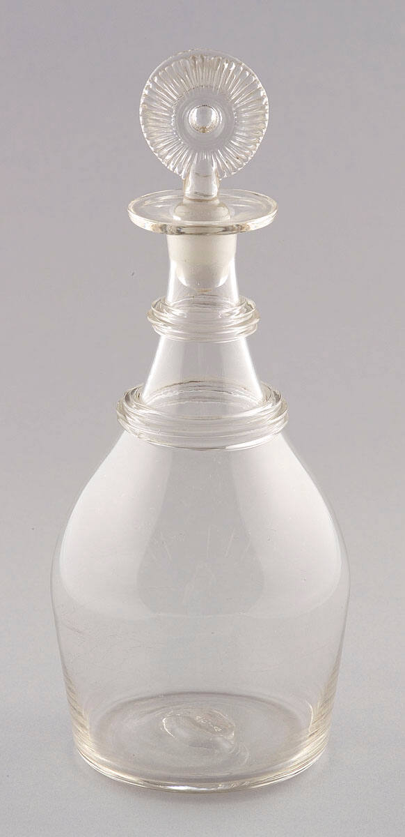DescriptionPair of decanters with silver labels engraved "Brandy" and "Hollands".
