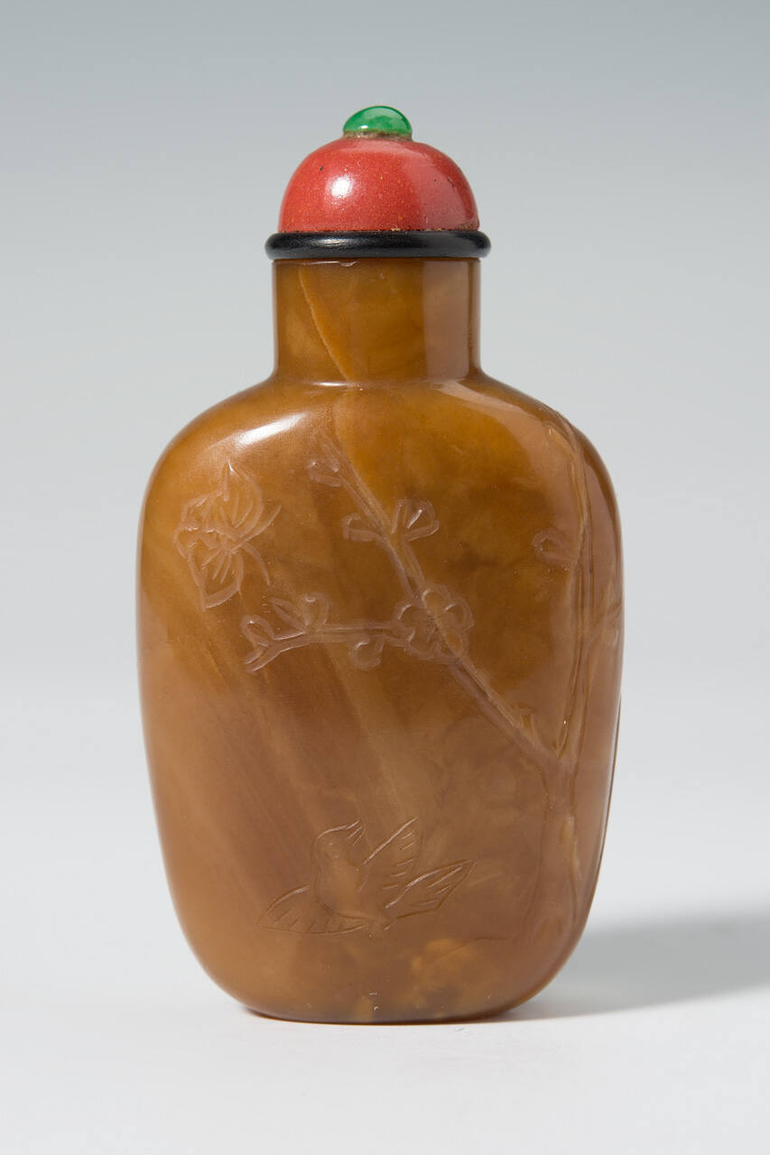 Snuff bottle with spoon, stopper, and stand