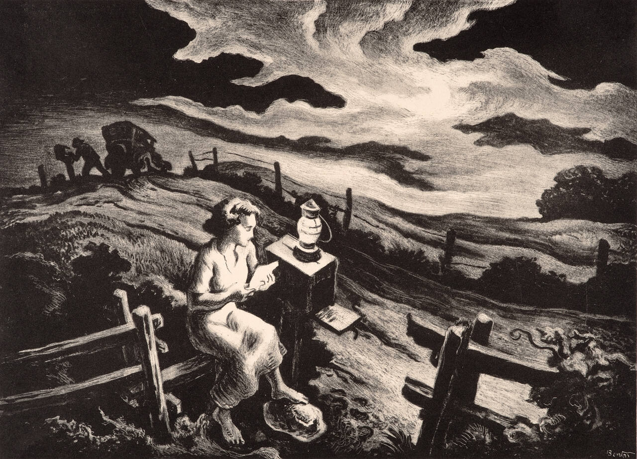Letter from Overseas makes palpable the tensions that pervaded the home front during the height of World War II, when Thomas Hart Benton created this lithograph. Letters served as the only form of communication between mothers and sons, wives and husbands. Could Benton, a World War I veteran, have been inspired by sentiments like those found in these excerpts from real wartime letters?