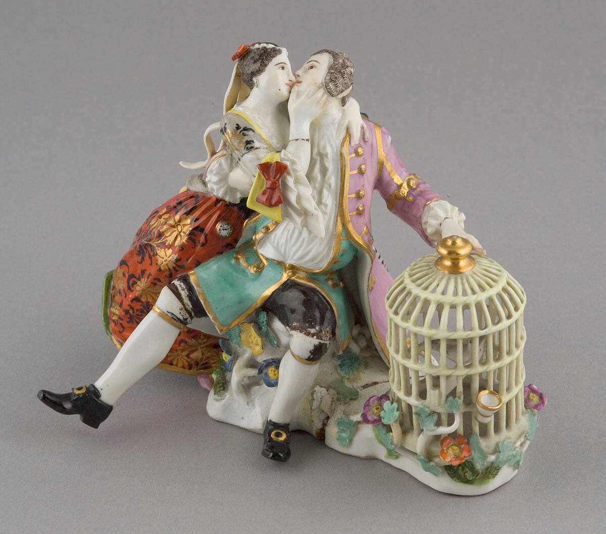 DescriptionLady in crinoline gown kissing a cavalier whose left hand rests on a bird's cage.ProvenanceWith A. S. Drey, New York, by November 29, 1933 [1];