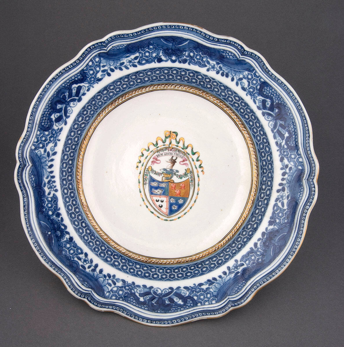 DescriptionDecorated with underglaze blue, Fitzhugh borders, bearing the Gordon arms.