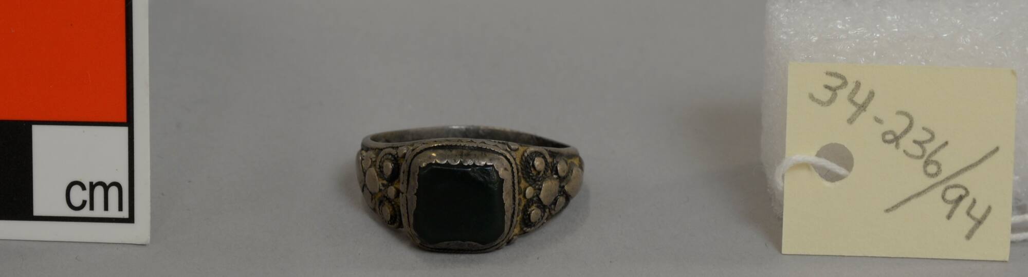 DescriptionSilver ring set with square dark green stone.ProvenanceElla Anna Loose (née Clark, 1860-1945), Kansas City, MO, and Washington, DC, by 1934 [1];