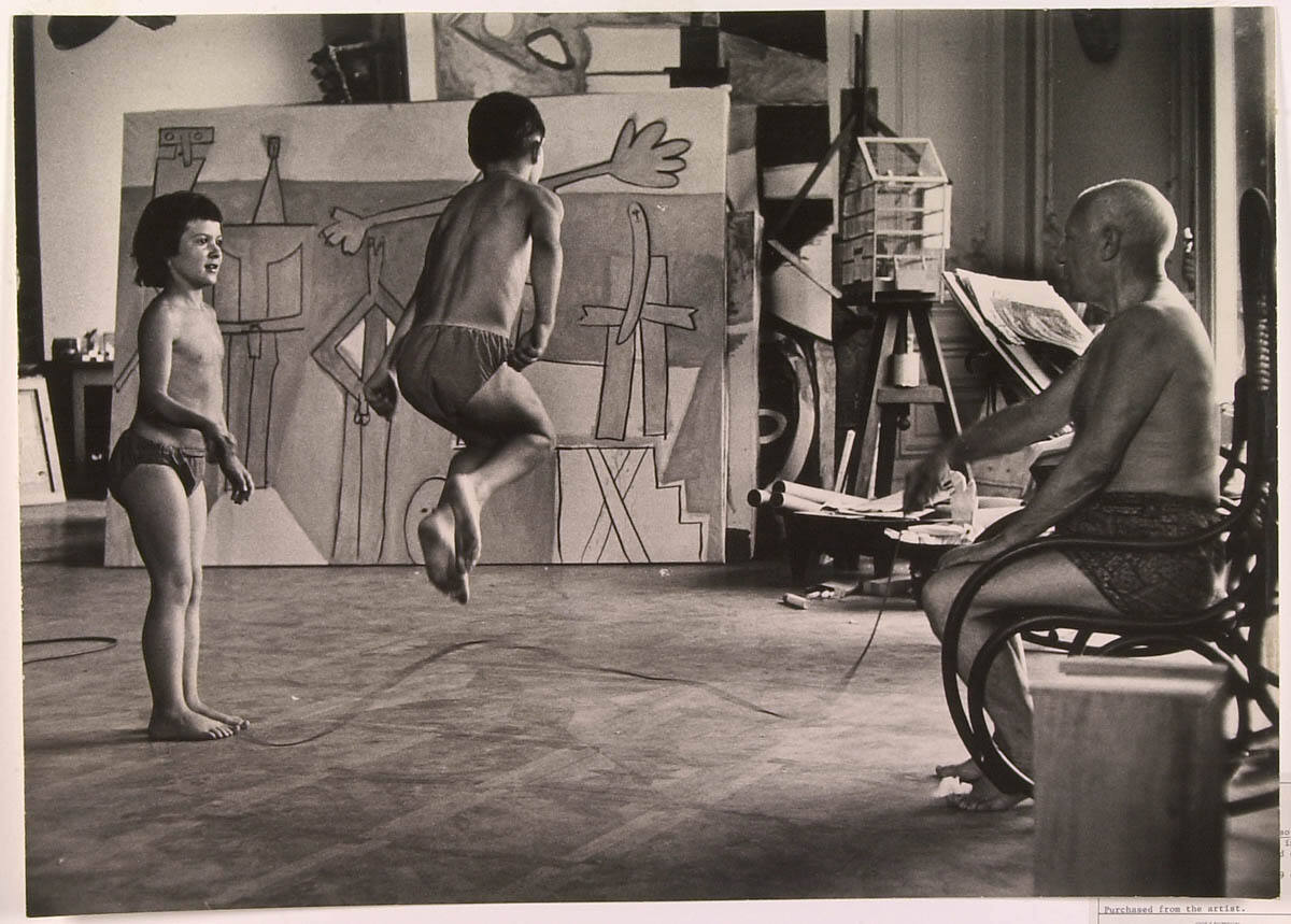 Paloma and Claude Skipping Rope in the Studio, with Picasso Holding One End of the Rope