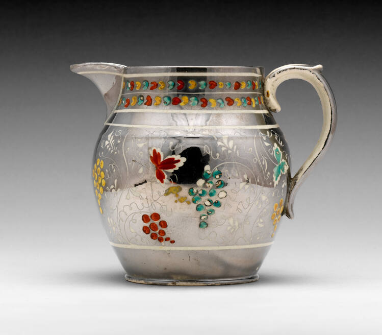 MediumEarthenware with lead glaze, lustre, and enamel
