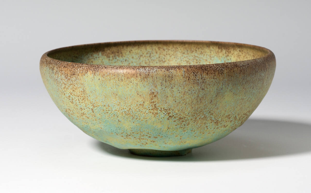 DescriptionBowl with matte glaze with numerous small bubble craters. Turquoise blue with yellow and brown around the upper edge.CopyrightThis work is copyrighted.