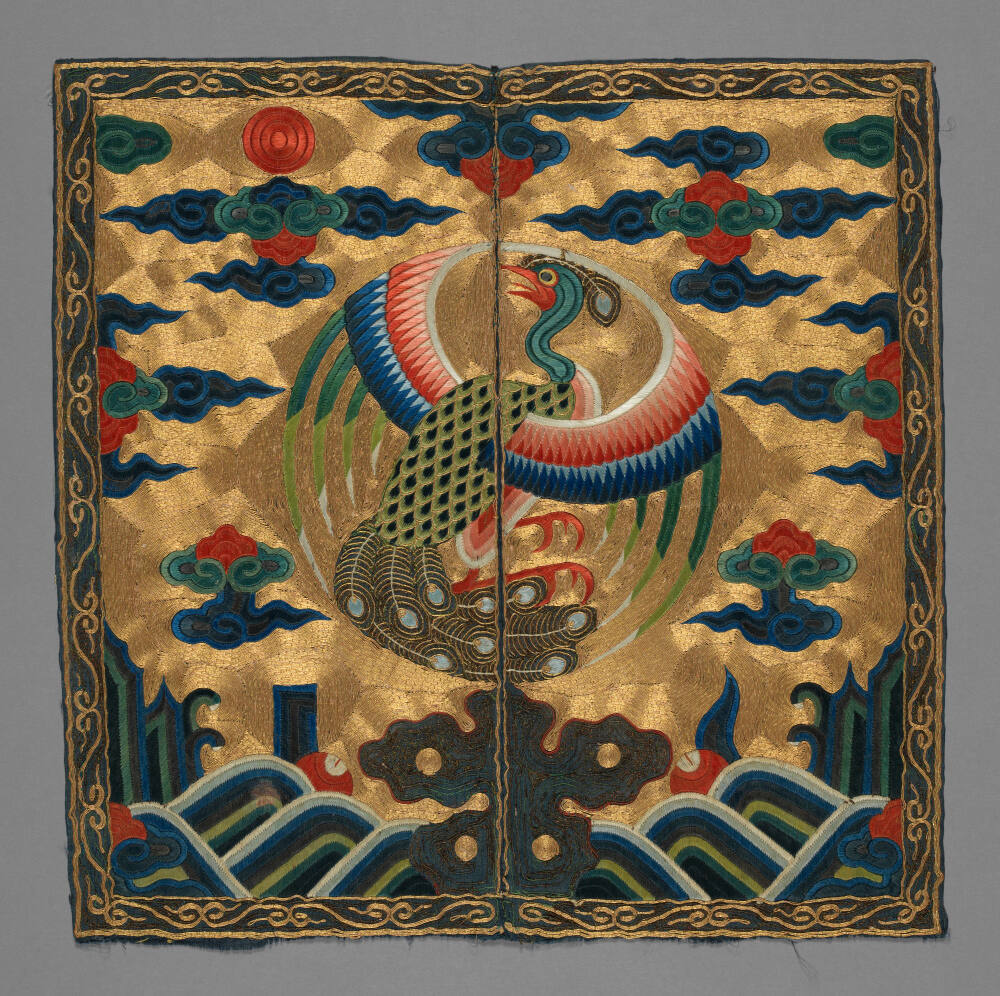 Third CIVIL RANK: This artist used real peacock feathers and gold foiled thread to embroider the royal plumage of the male peacock, the symbol of a force of good in Buddhism.