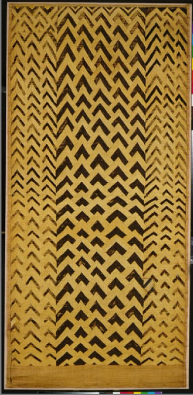DescriptionLight brown background with an all-over tan and dark brown zigzag pattern. Light brown border on one end.ProvenanceFifi White, Shawnee Mission, KS, by 1998;