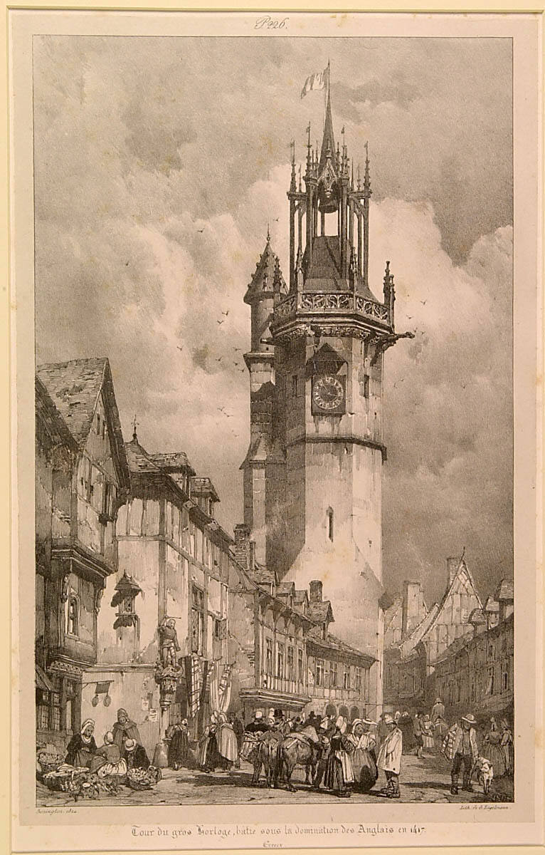 George L. McKenna, Prints, 1460-1995 (Kansas City, MO: Nelson-Atkins Museum of Art, 1996), 285, (repro.), as Tour du Gros-Horloge, Evreux.