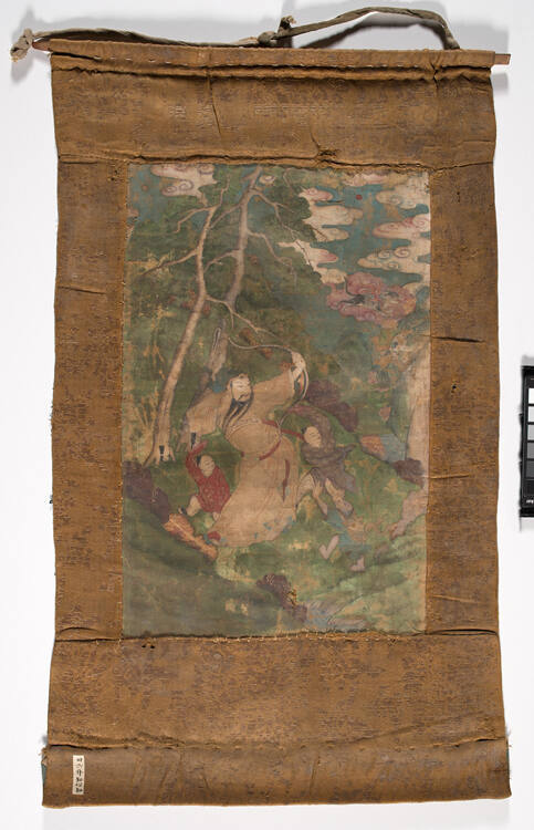 MediumColors on cotton; mounted on brocade