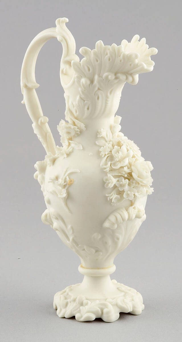 DescriptionWhite body. Parian ware, unglazed. Molded bouquet of flowers in the full round.
