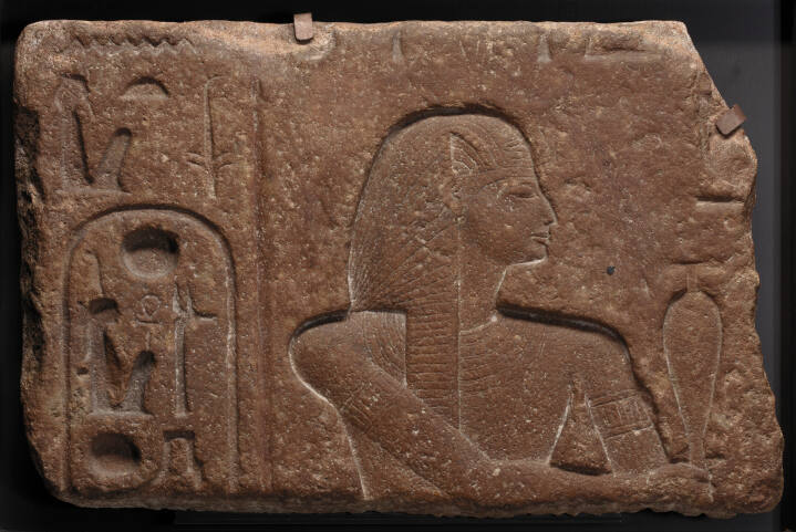 Although the artist portrays Ramses II with a long aquiline nose, the image remains highly idealized, as suited a ruler born of divine parents. The portrait's delicate features stand in contrast to the powerful, emotion-filled image of Sen-useret III behind you to the right.