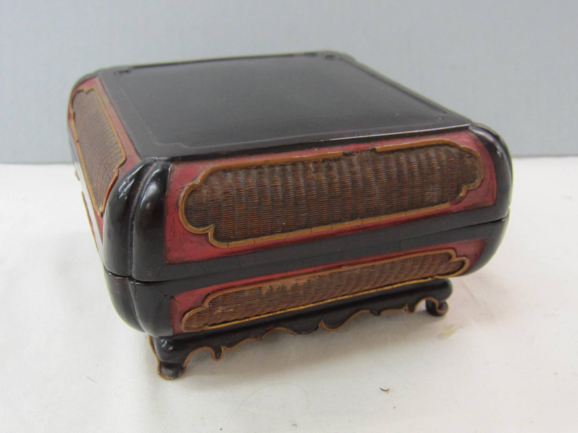 MediumCarved and lacquered wood, wickerwork