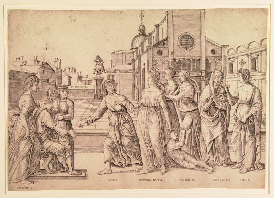 Exhibition HistoryArchitecture and Decorative Arts in Prints from the Permanent Collection, The Nelson-Atkins Museum of Art, Kansas City, MO, March 13-April 10, 1983, no. 16, as Calumny of Apelles, dated about 1500-1506.