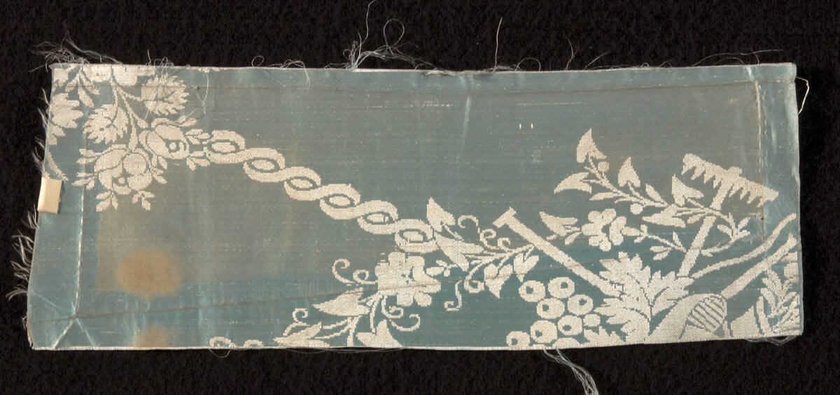 DescriptionTwo-colored damask. Eau-de-nil and cream; satin tabby weave.