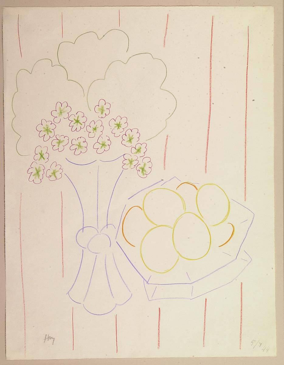 Henri Matisse: Aquarelles-Dessins, exh. cat. (Paris: Jacques Dubourg Gallery, 1962), unpaginated, as Bouquet et Fruits.