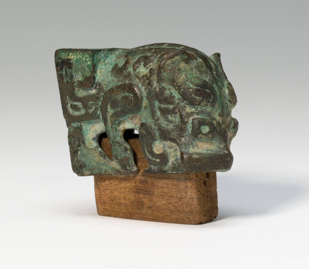 DescriptionSmall hollow bronze ornament in form of a stylized dragon with large head; green patina.ProvenanceT'ang Hsiao Wu, Peiping (modern-day Beijing), China, by March 30, 1934;