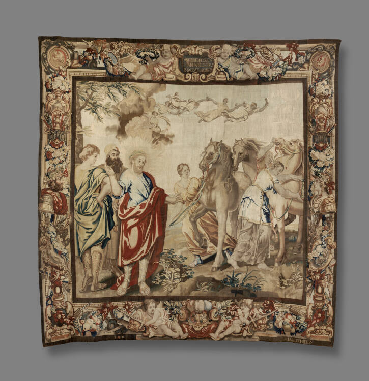 [1] J. P. Morgan, Sr. lent three of the eight tapestries in this series to the Wadsworth Atheneum in December 1909 and they remained there until May 1932. J. P. Morgan, Jr. lent the remaining five tapestries in the series to the Wadsworth Atheneum from March 1928 to August 1932.