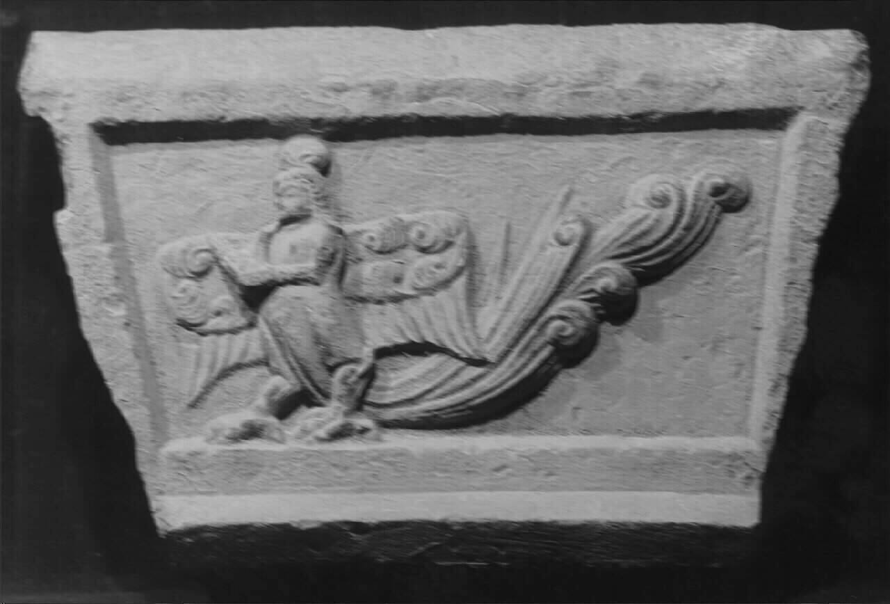 DescriptionOne side of the upper frieze of a small, octagonal cinerary pagoda with imagery of a celestial musician playing a flute.ProvenanceWith Celestin Liu, Peiping (Beijing), China, by August 1931;