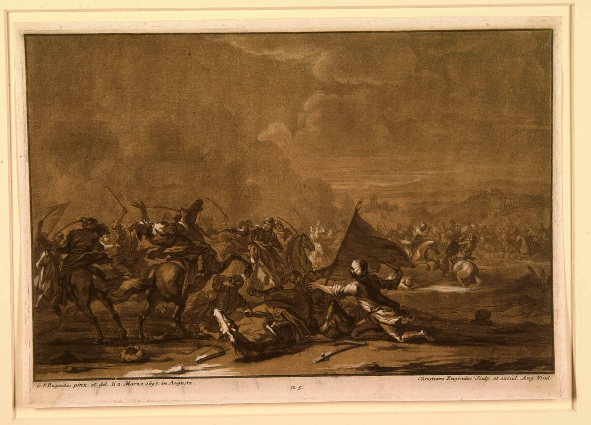 George L. McKenna, Prints, 1460-1995 (Kansas City, MO: Nelson-Atkins Museum of Art, 1996), 303, as Battle Scene, after 1697 painting by Georg Philipp Rugendas I.