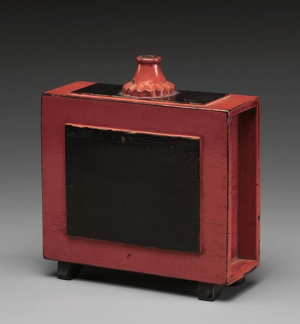 Gallery LabelThis bottle was used for serving sake, Japanese wine made from fermented rice, in religious processional rituals and on other occasions. Negoro ware is named after a temple, Negoroji, where this distinctive type of ware was thought to have first been made. When the object ages, the black lacquer becomes visible under the red, creating an appealing, antiqued appearance.