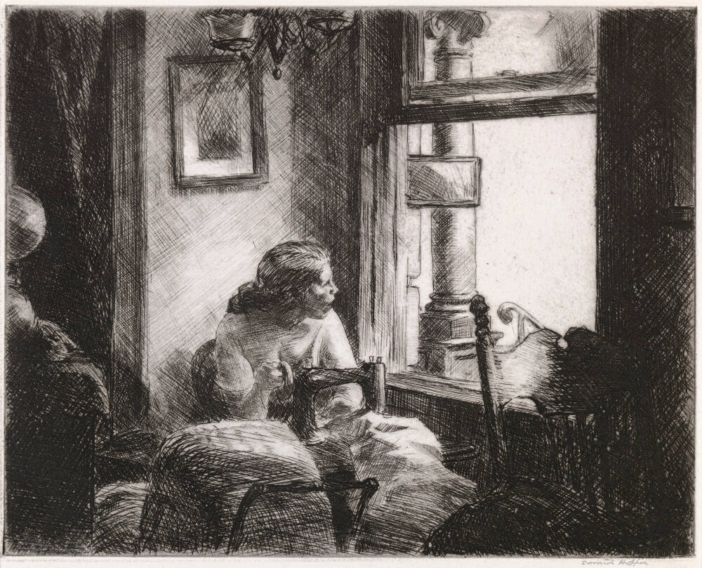 Gallery LabelEdward Hopper turned to interior subjects many times throughout his career, partly out of respect for 17th-century Dutch art. East Side Interior follows very closely a drawing he created of the same subject. Notoriously reticent to comment on his work, the artist wrote of this view of a woman looking out the window while sewing: "There is little to tell about it. It was entirely improvised from memories of glimpses of rooms seen from the streets in the eastside in my walks in that part of the city. No implication was intended with any ideology concerning the poor and oppressed. The interior itself was my main interest-simply a piece of New York, the city that interests me so much…."