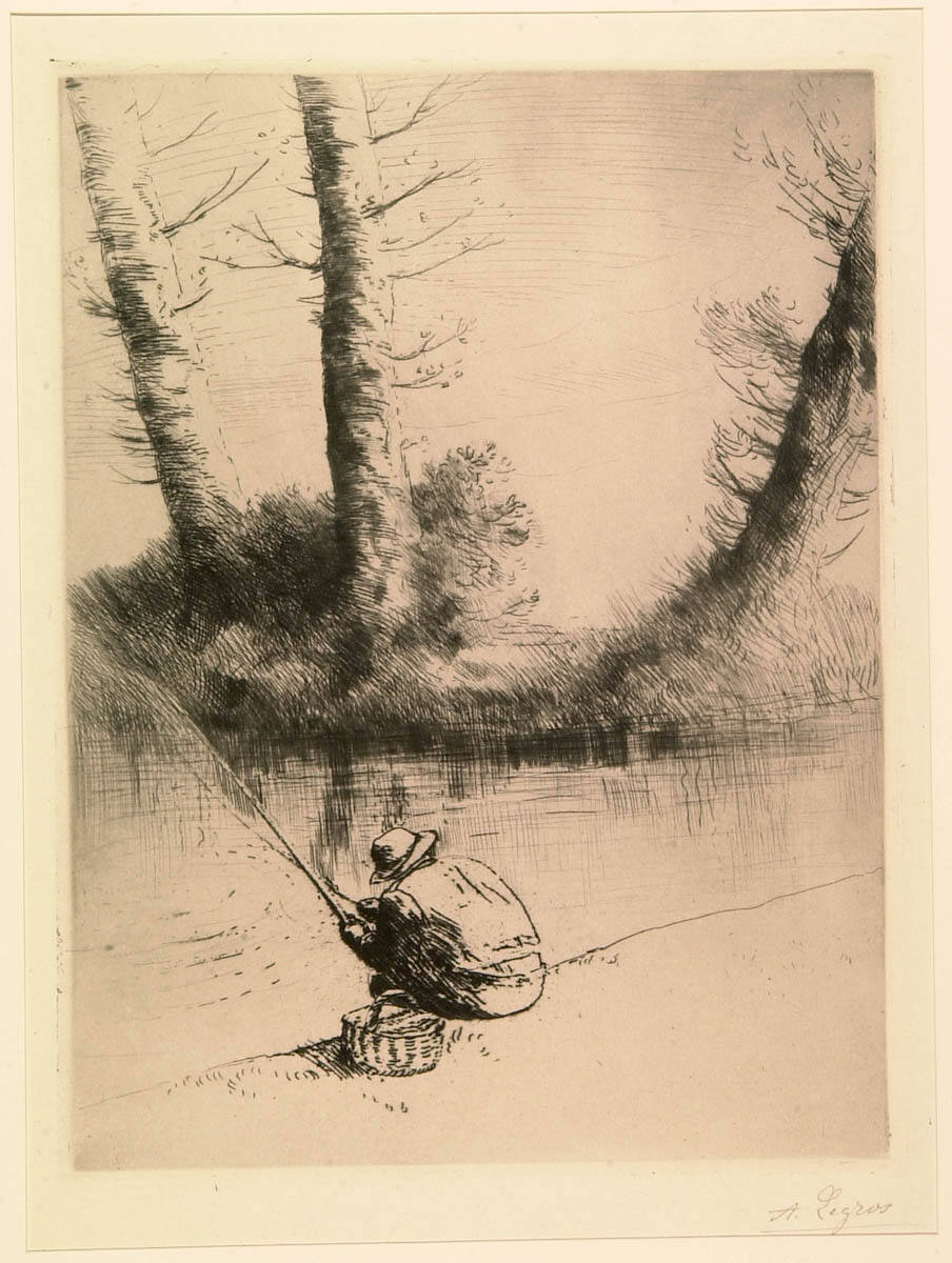 Gallery LabelAlphonse Legros was a leader of the etching revival in France. In this composition, rather British in its rural serenity, the fisherman is emphasized by the simplicity of the river bank on which he sits, which is merely suggested. The bold strokes of the trees and vegetation on the far bank recall the free brushwork of the Impressionists.