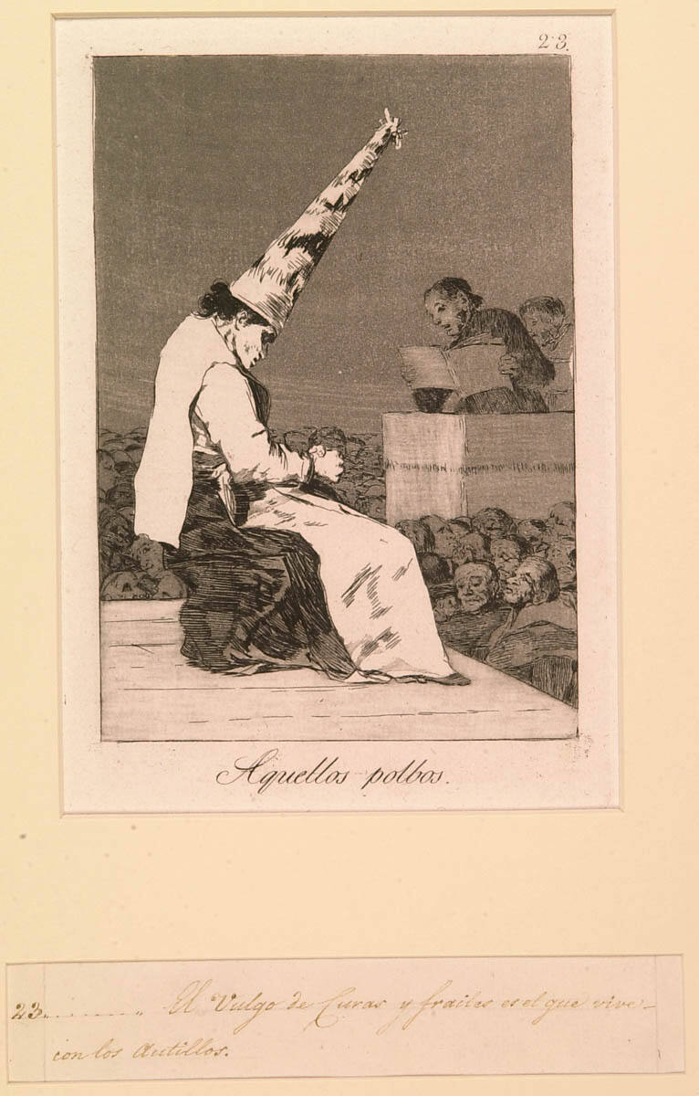 Tomás Harris, Goya Engravings and Lithographs (Oxford: Bruno Cassirer, 1964), 1: pp. 110, 134-35, as Aquellos polvos (Those specks of dust); 2: no. 58, p. 93, (repro.), as Aquellos polbos. (Those specks of dust.).
