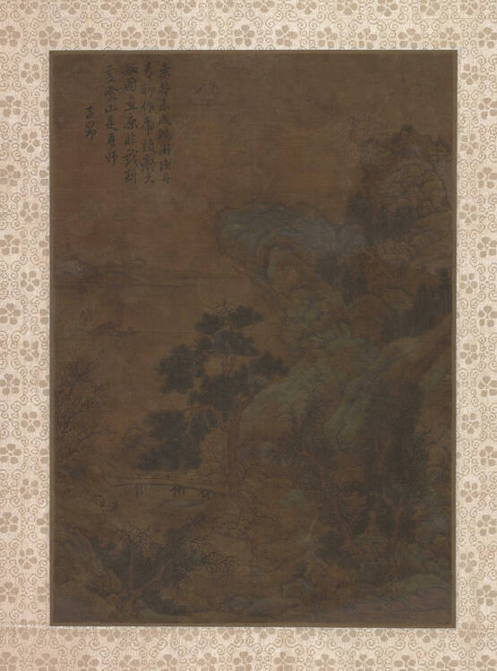 DescriptionAlbum painting of mountainous landscape, bridge in the foreground, lake at left with boat.ProvenanceYung Ku Chai, Peiping (modern-day Beijing), China, by March 27, 1934;